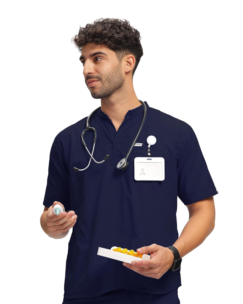 - Classic Men’s 5-Pocket Mandarin Collar Scrub Suit