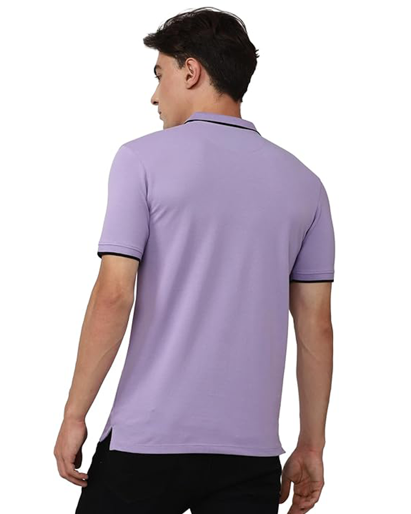 Men’s Snug Fit Solid Polo T-Shirt with Coloured Collar Tipping Cotton Rich
