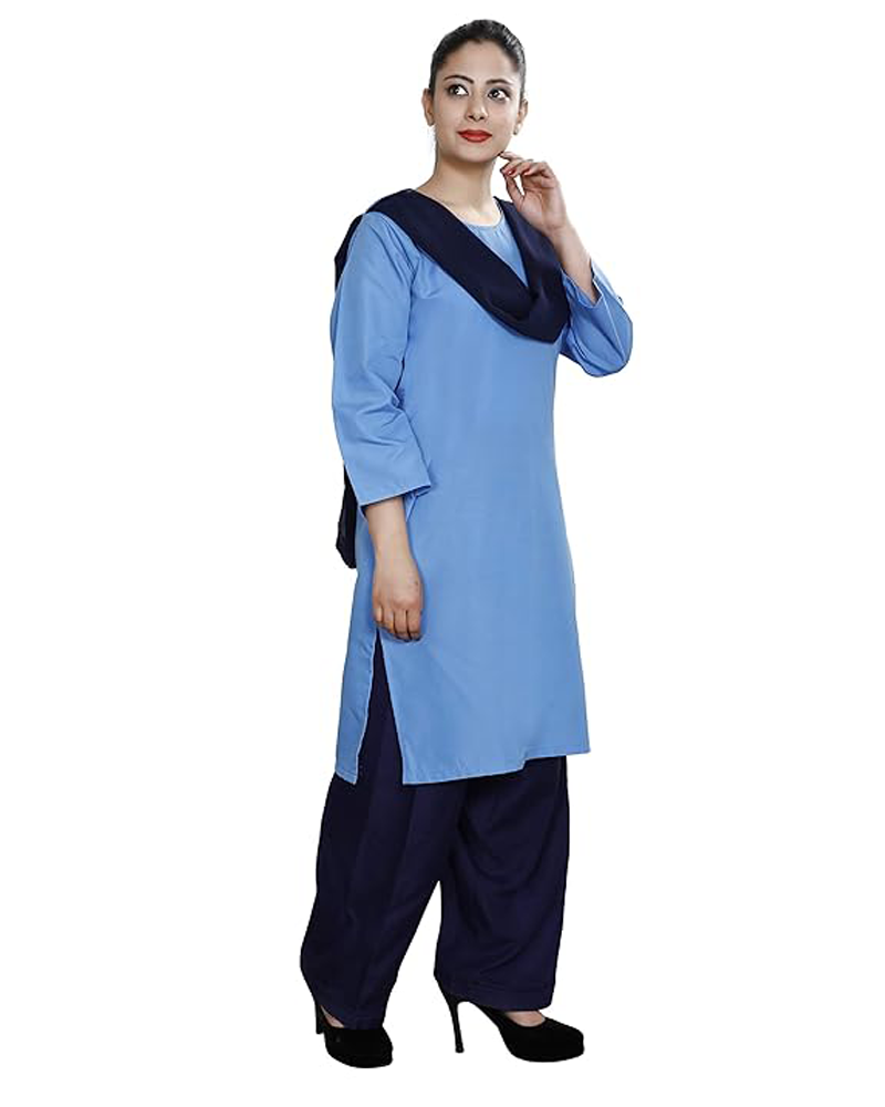 Bottom (Salwar) comes with drawstring pattern so it is adjustable according to your waist. This support Staff wear is available in various sizes and colours. - Salwar Suit is designed to be the ideal wear for Housekeeping, Hospital Hotel support staff, Lady Security Guard, School girl Students, Lady Peon, Maid, Cleaning staff etc.