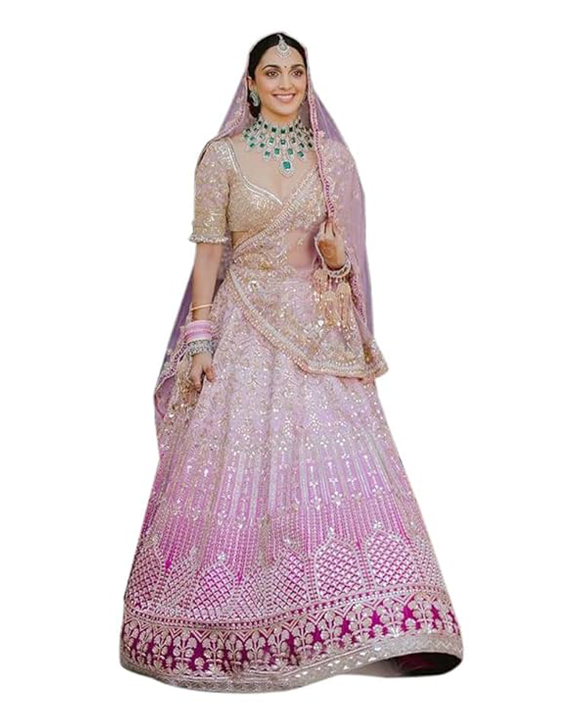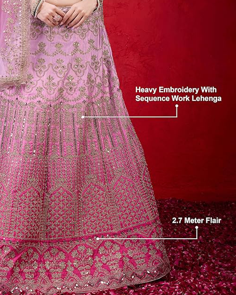 Women’s Satin Sequin Embroidery Bridal Lehenga Choli with Net Dupatta